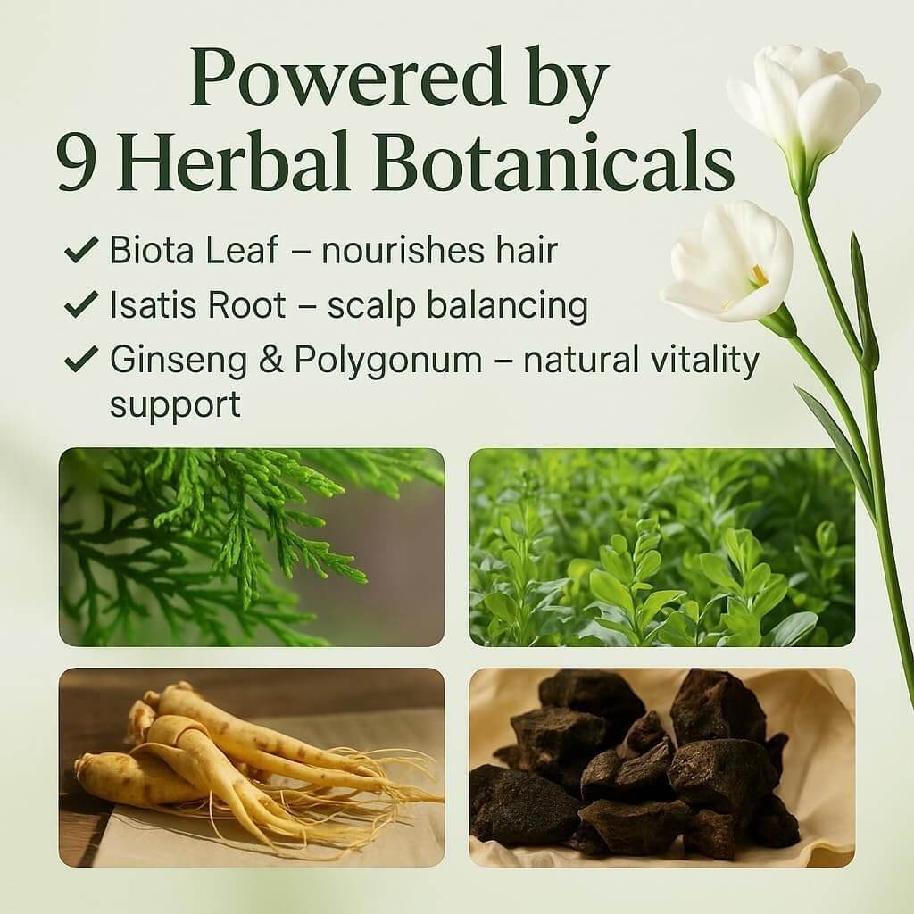 Herbal Formula: Contains Platycladus and Usman herbs for natural hair care benefits